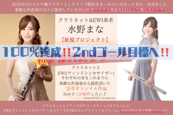 募集終了SUCCESS募集終了【クラリネット盤とEWI盤の完全オリジナルCDをそれぞれ制作したい!】