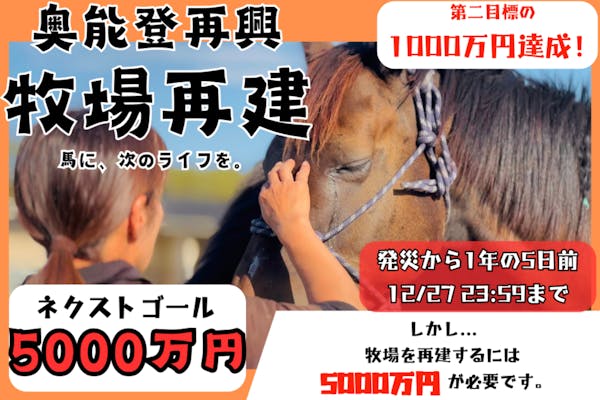 SUCCESS募集終了【能登半島地震復興】牧場再建!そしてホースヴィレッジとして進化し雇用を創出したい