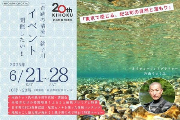 募集終了SUCCESS募集終了奇跡の清流が東京に来る!町制20周年記念「三重県紀北町・銚子川」応援プロジェクト