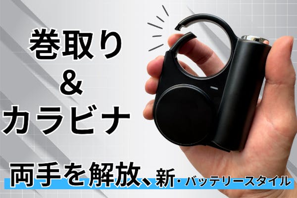 SUCCESS募集終了巻き取りケーブルが内蔵!カラビナ式でいつでもどこでも充電可能