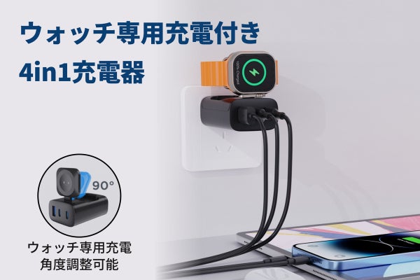 数台充電もスマートに!3つのポートにウォッチ充電付きの4in1充電器