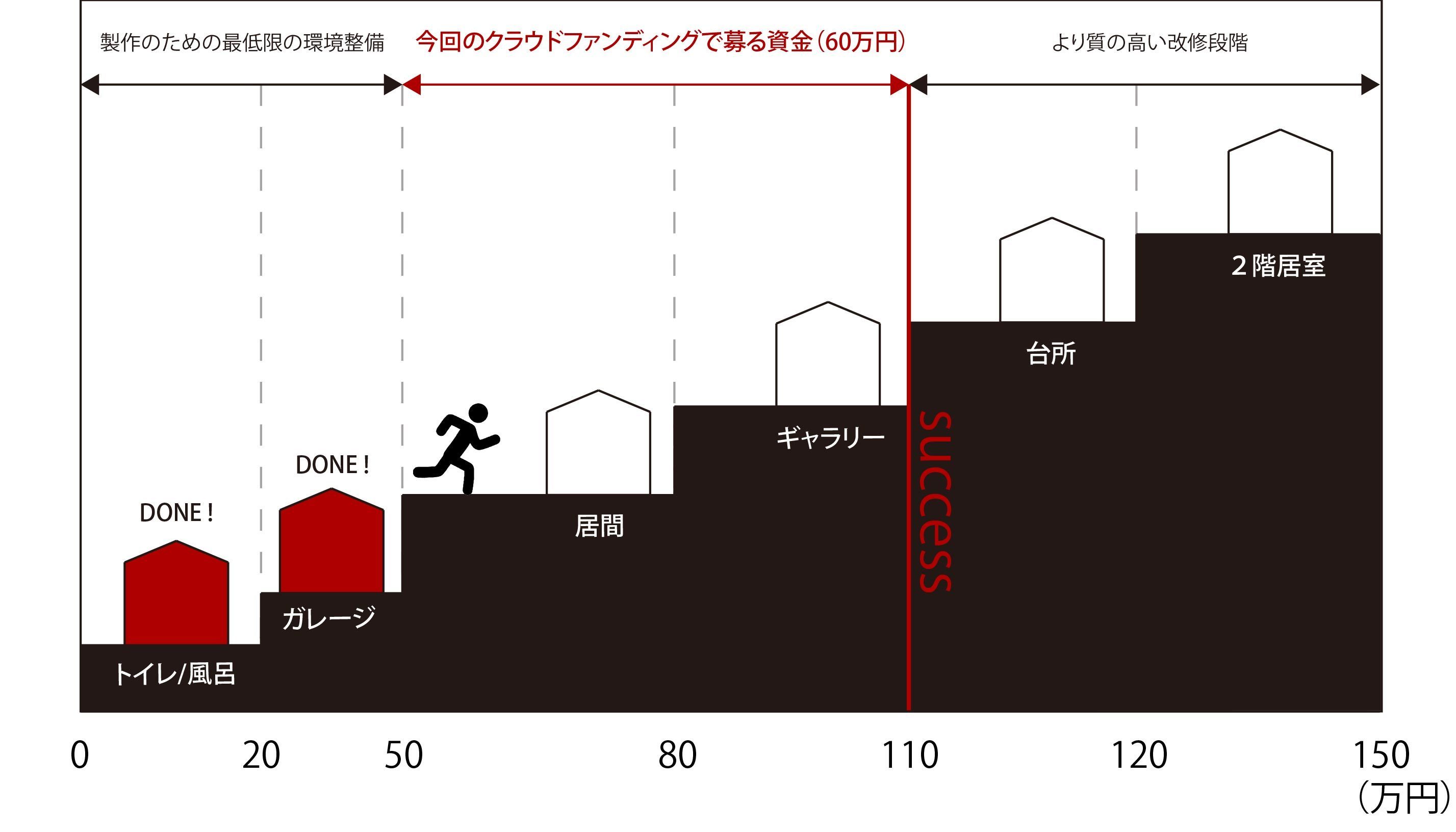 ご支援額が90万円に到達したら、全てのDIY工事がすぐにでも始められ、来年4月には工事が終了します。