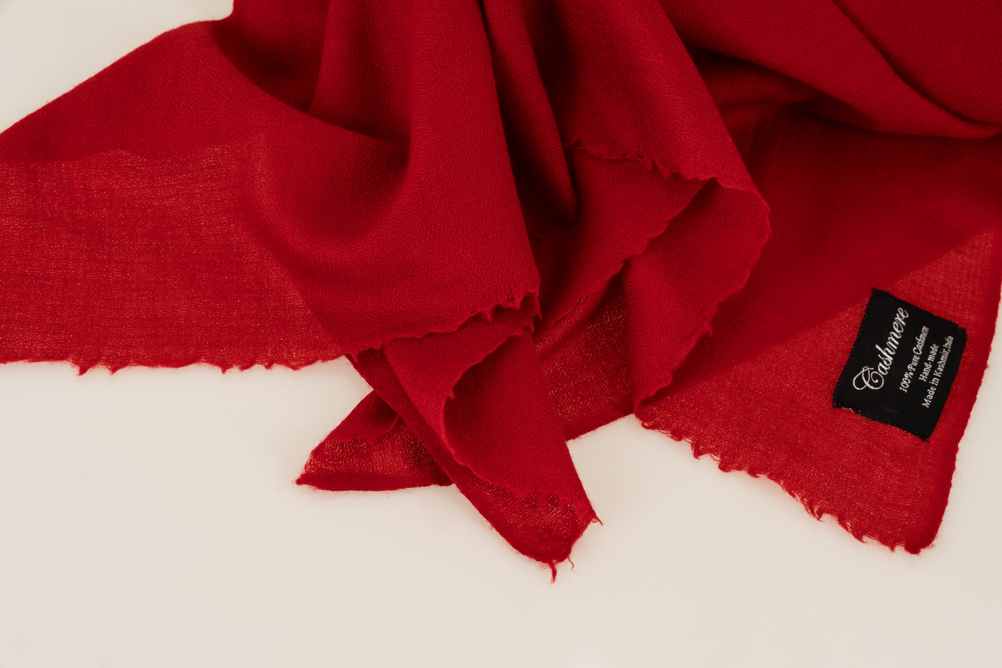 *仕上げの説明:機械で編んだカシミヤマフラーとは異なり、カシミール伝統的な方法で編んだものは追加の仕上げ処理がなくても解けないので自然な仕上げになっております。