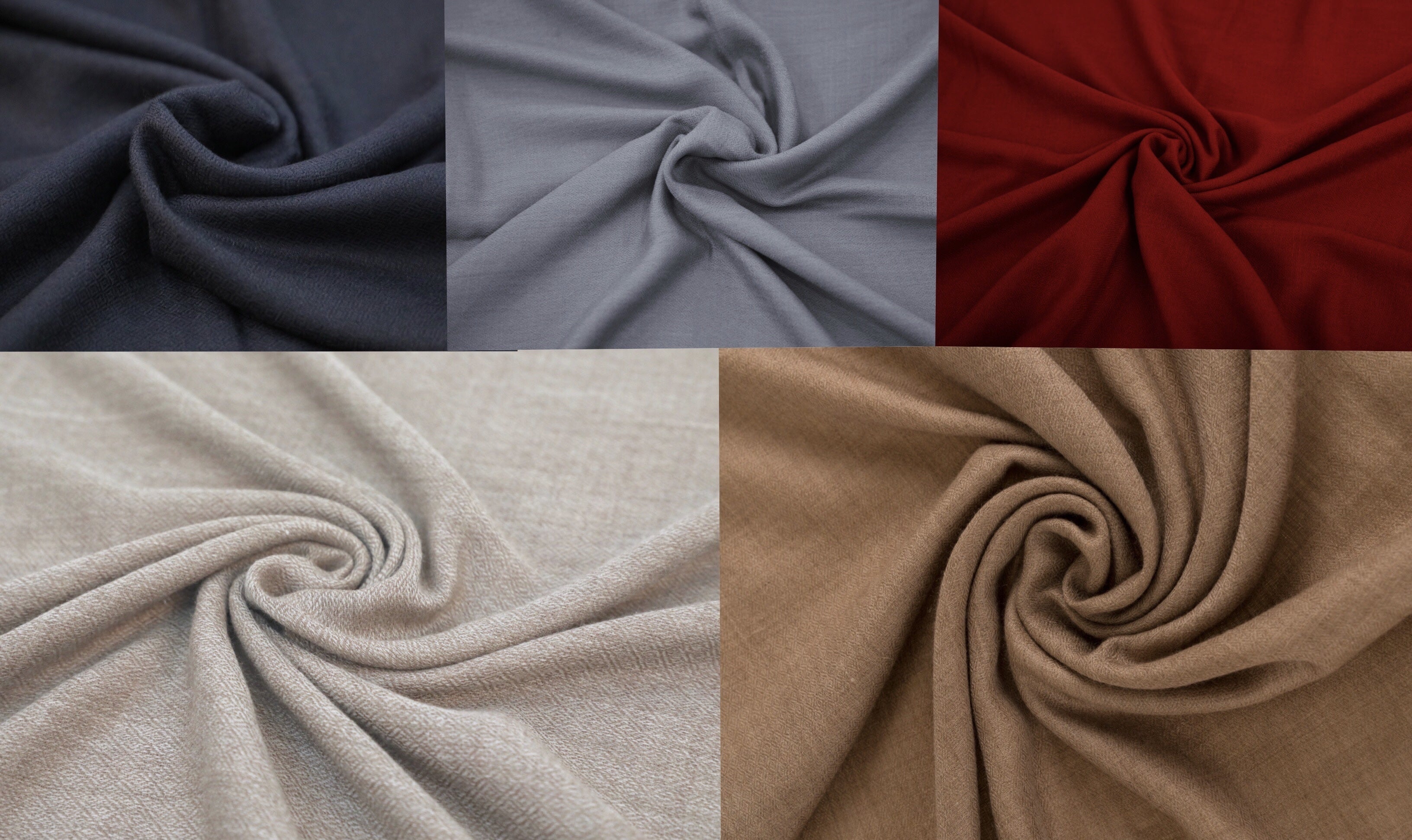 パシュミナは採取される羊毛の中で最も薄くて柔らかい山羊のあごひげと胸の綿毛のみを利用して作った最高品質のカシミヤです。 ヒマラヤ高山地帯の塩素は-20°Cへと急落する高地帯で生き残るます。 これらの綿毛は繊維の厚さが12-15ミクロンで、最高級カシミヤの材料になります。 簡単に言えばパシュミナは、カシミヤの中で最も薄くて柔らかい最上級のカシミヤです。