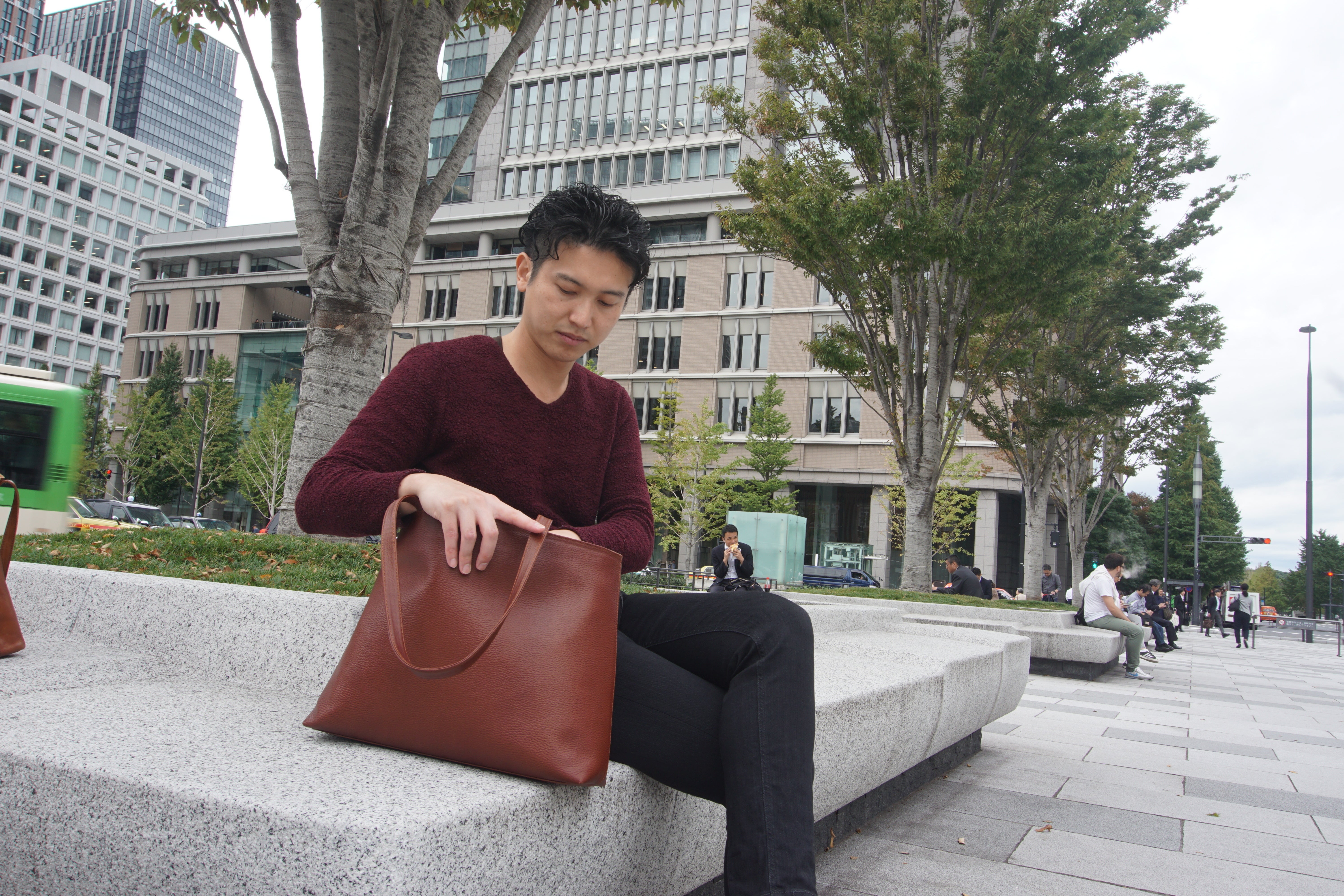 20代前半男性。東京でWEBコンサルタントとして活躍中。トートバッグ(ブラウン)使って頂いています。