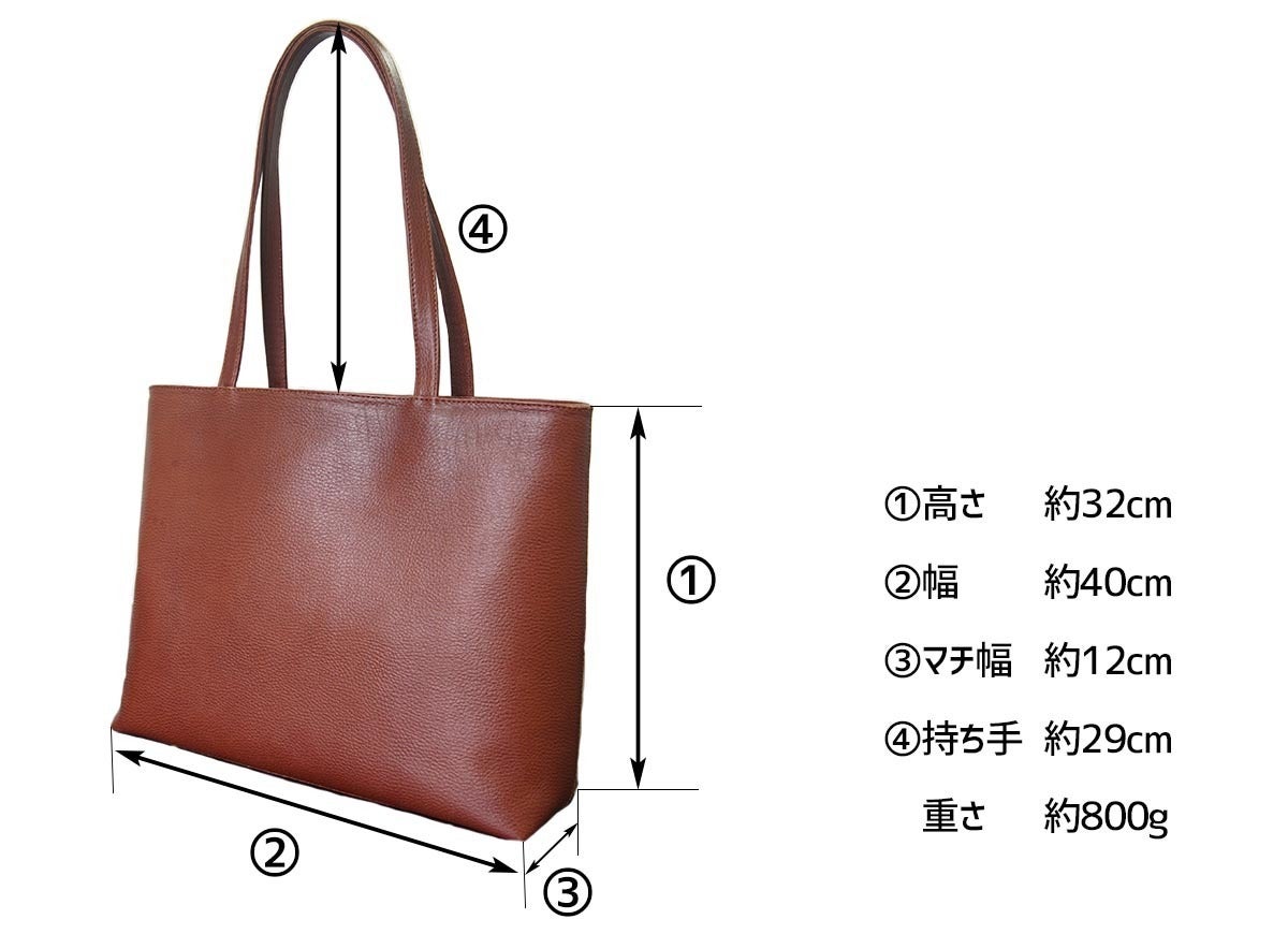 A:A4サイズのファイルやノートパソコンを持ち歩くことが多いので仕事の時はピッタリのサイズ感です。化粧ポーチ、財布などを入れてもゆとりがありますね。シンプルなバッグなので取引先との打ち合わせに行くときも使えるので便利です。