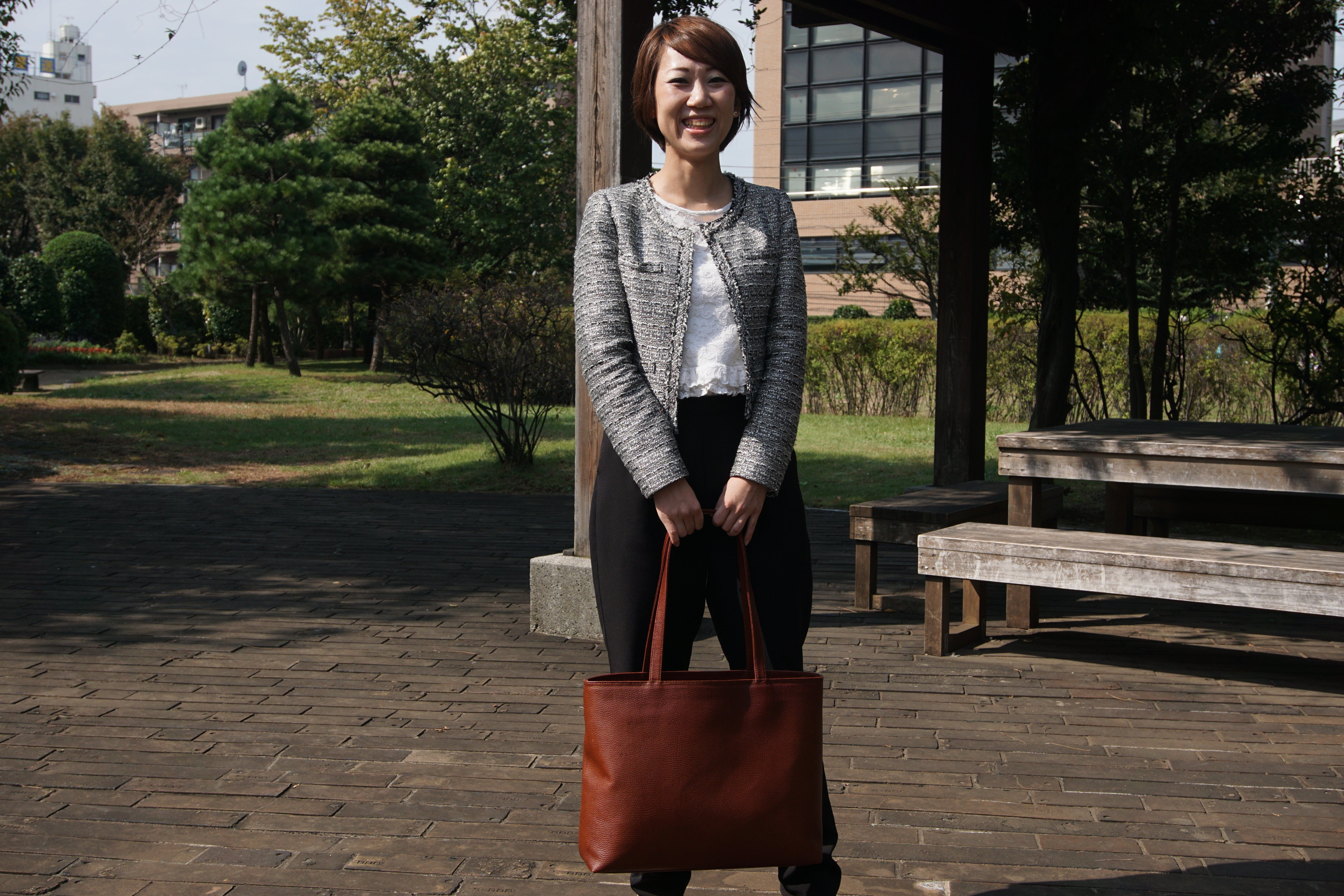 30代前半女性。パティシエから都内のIT企業に転職して活躍中。トートバッグ(ブラウン)使って頂いています。