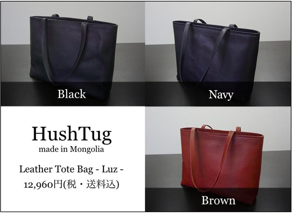 HushTugのクラウドファンディング第1弾となる商品は牛の本革トートバッグ『Luz-ラズ-』です。