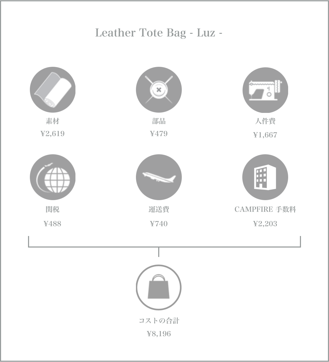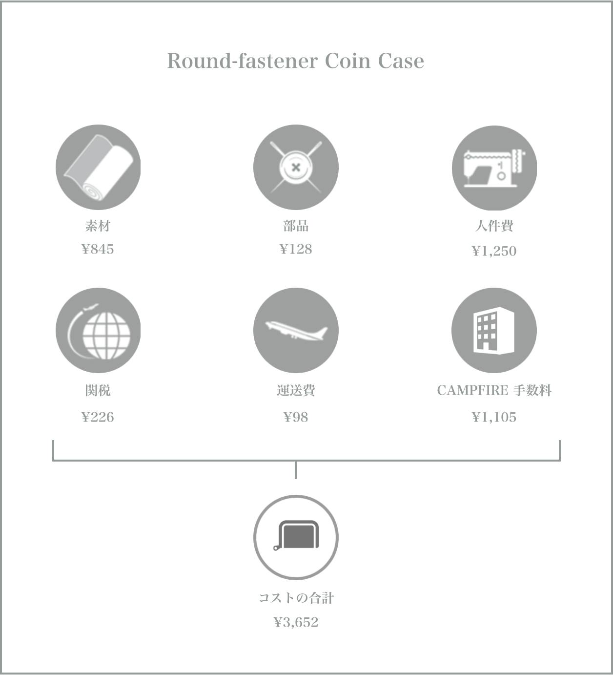 ラウンドファスナーコインケースのコストの内訳と合計です。