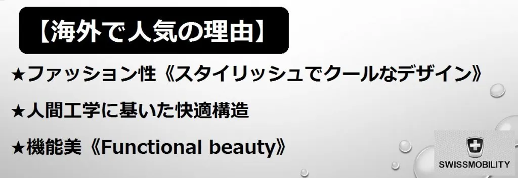 「SWISSMOBILITY」のスーツケースは市場に出るとすぐに欧米で高い評価を獲得し、商品ラインアップをバックパックや旅行小物まで広げてゆきました。