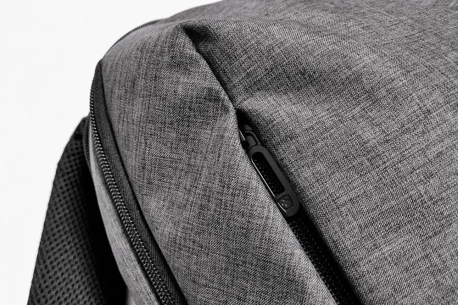 フロント左右の縦のラインのファスナー部分にはマチがあり、ファスナーの引手を引き込んで収納できるスマートなデザイン性に加え、とっさにポケットを開けられにくく安全性にも配慮された機能があります。