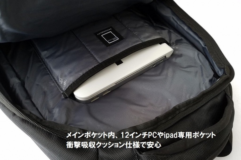 ●人間工学に基づいた「機能美」。高いクッション性とメッシュ構造がムレを防止※背面両サイドに配置した肉厚クッションのフィット感が圧迫感を軽減し、長時間の使用でも疲れにくい。また、クッション及びショルダーベルトの人体への接地面はメッシュ構造でムレ防止。快適さを保ちます。