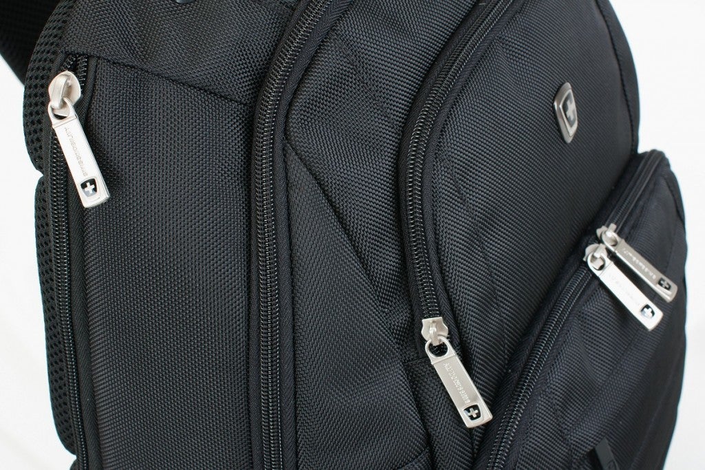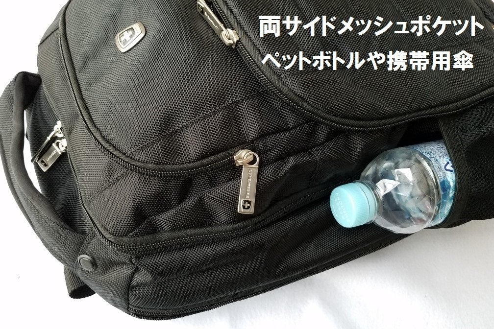 ●前面4つと側面(ノートPC用)のポケットの独立配置によりモノの出し入れがしやすい。ノートPCも肩に下げた状態で取り出せて便利です。