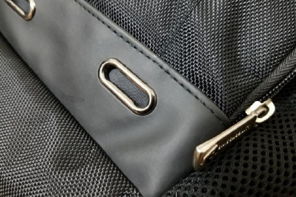 ●指カンやDカンを配備(Dカンはサングラスやフック掛けできるキーホルダーや小物を下げることができます。指カンはバッグを背負ったままでも、紐を短く調節できます。)