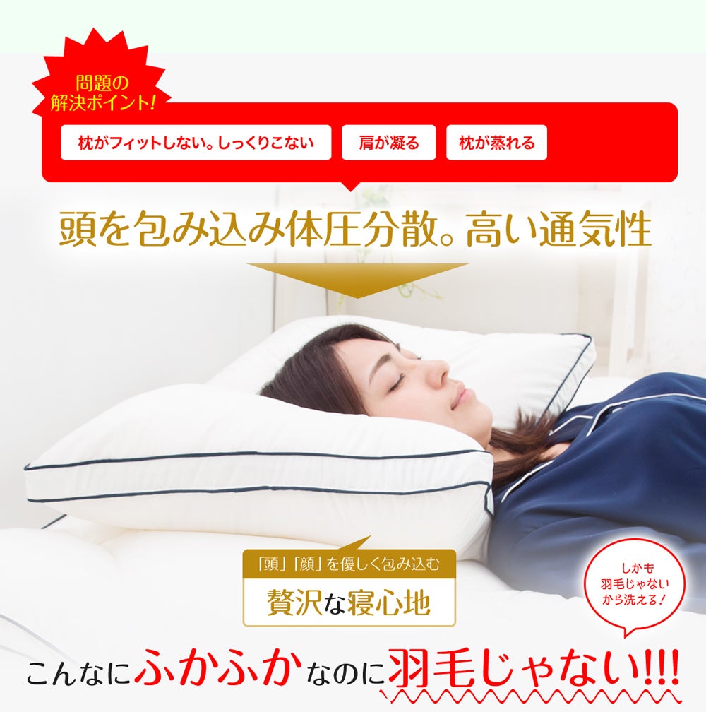 ふんわりとやさしく包み込んでくれる感触は一度使うと手放せなくなる枕です。