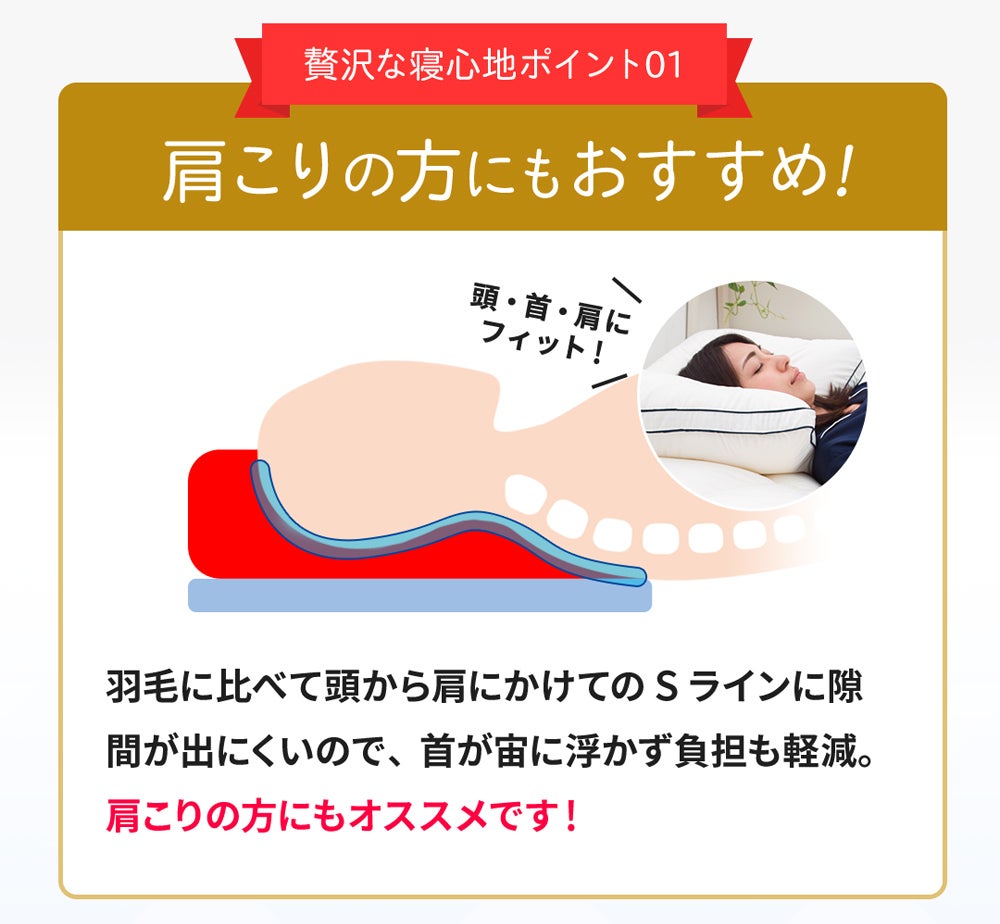 高級ホテルで味わえるふかふかのベッドとふかふかの枕をモデルに作られたグースリー枕は、今まで経験したことのないような新しい感触を実現しました。