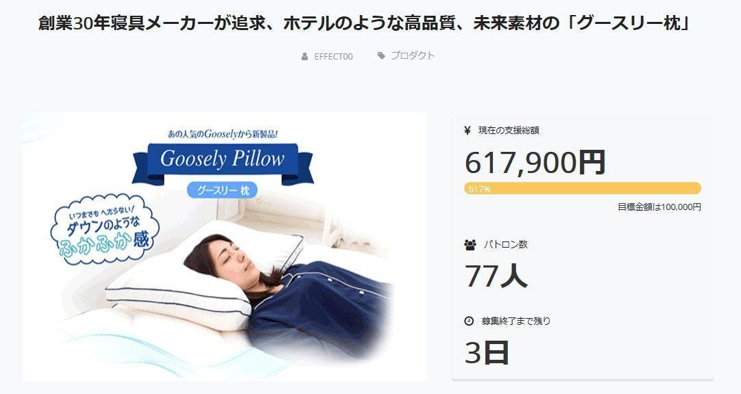 グースリー枕プロジェクトが残り1日を切りました!