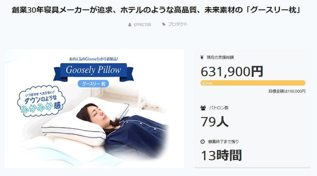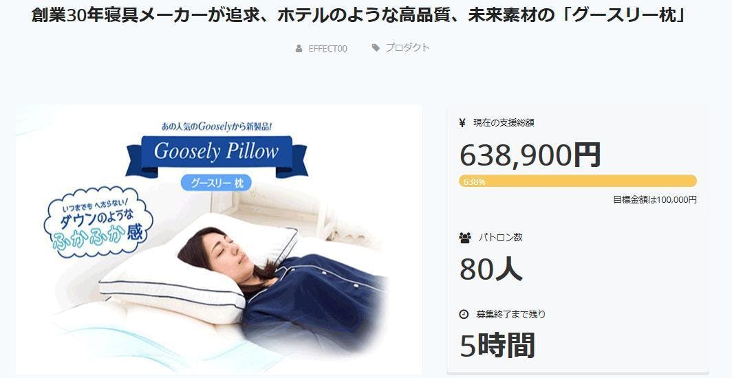 グースリー枕プロジェクトが残り6時間を切りました!