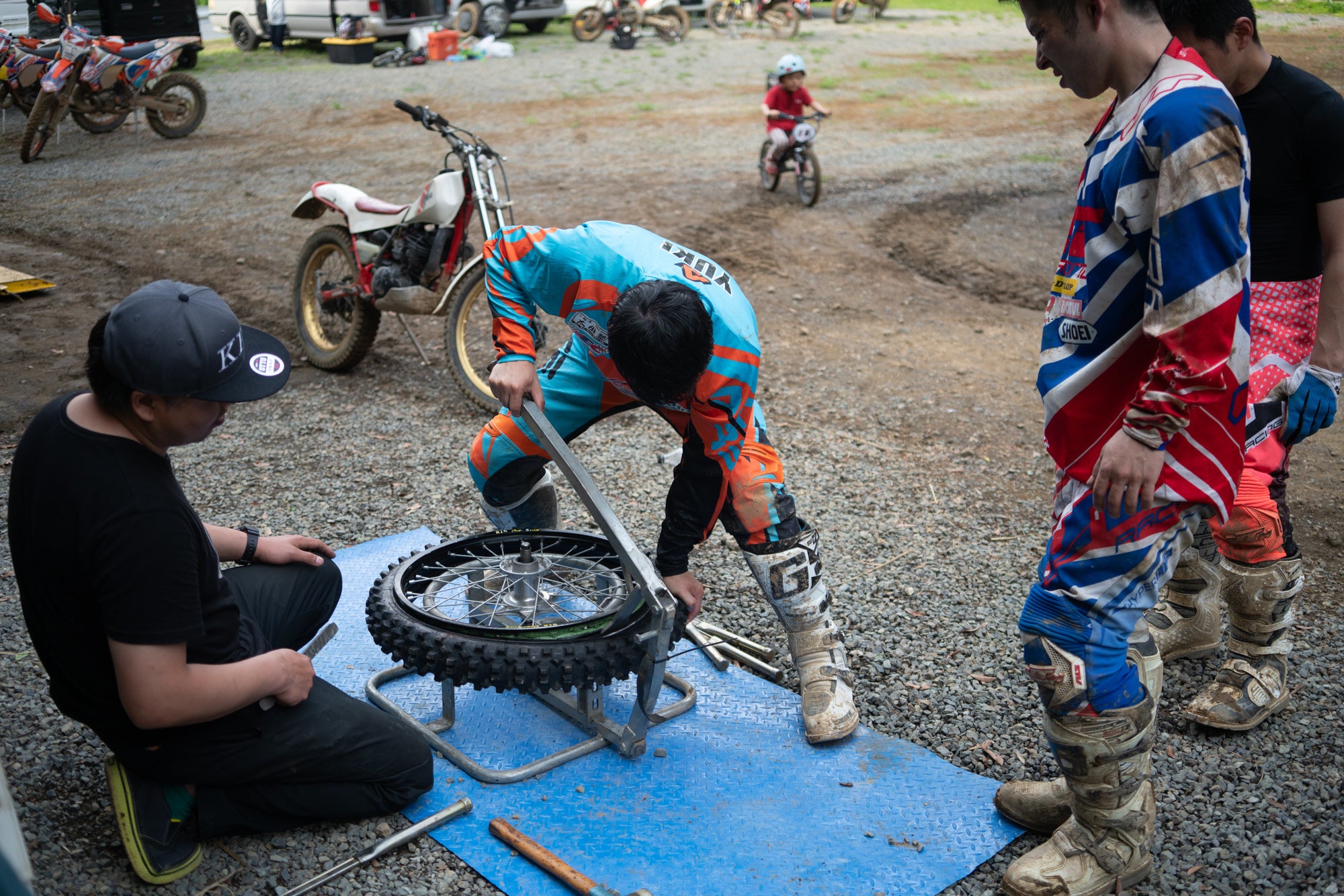 朝のスタート前10分、ゴール前の15分だけが整備の時間として割り当てられ、選手本人だけがマシンに触ることを許されています。これは、ライディングの速さだけでなくオートバイを扱う人間力を試すレースであることを象徴しています。