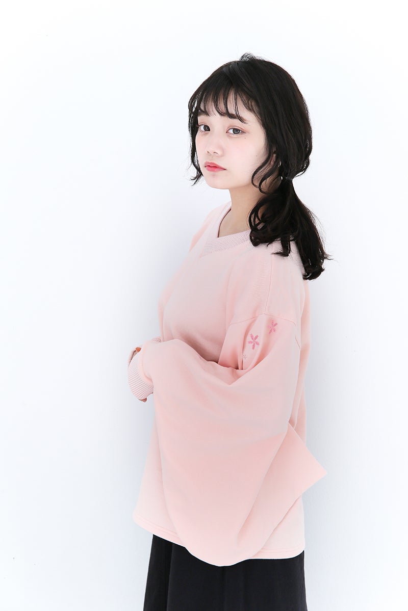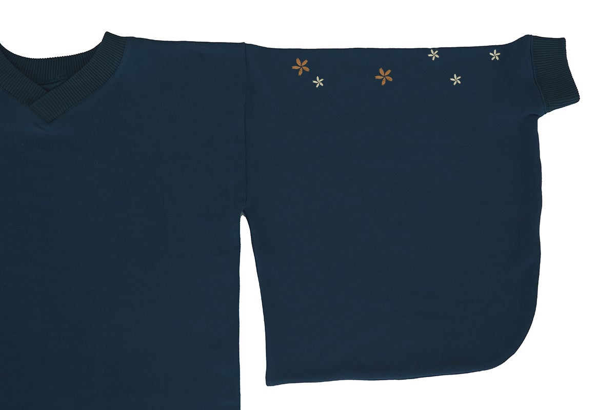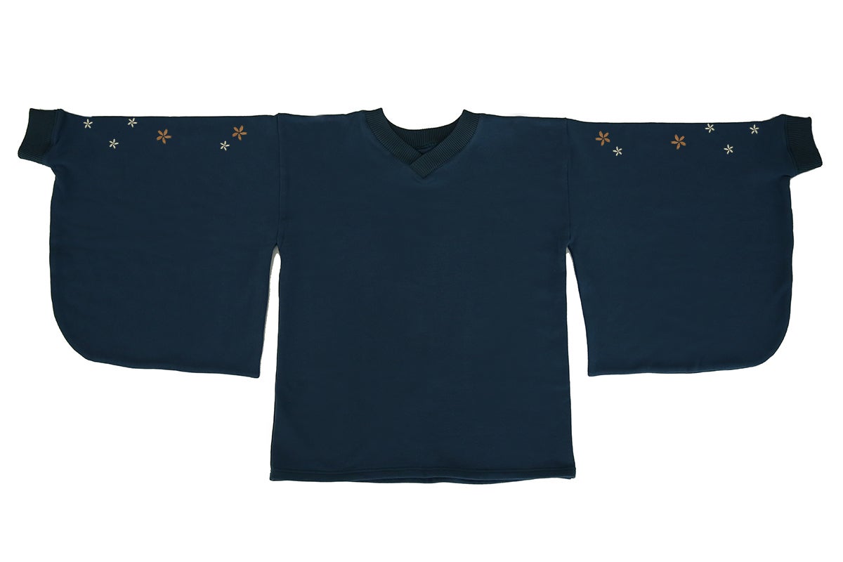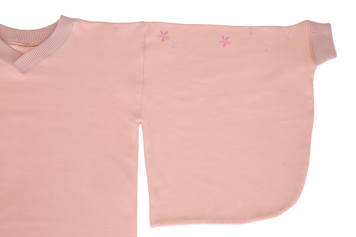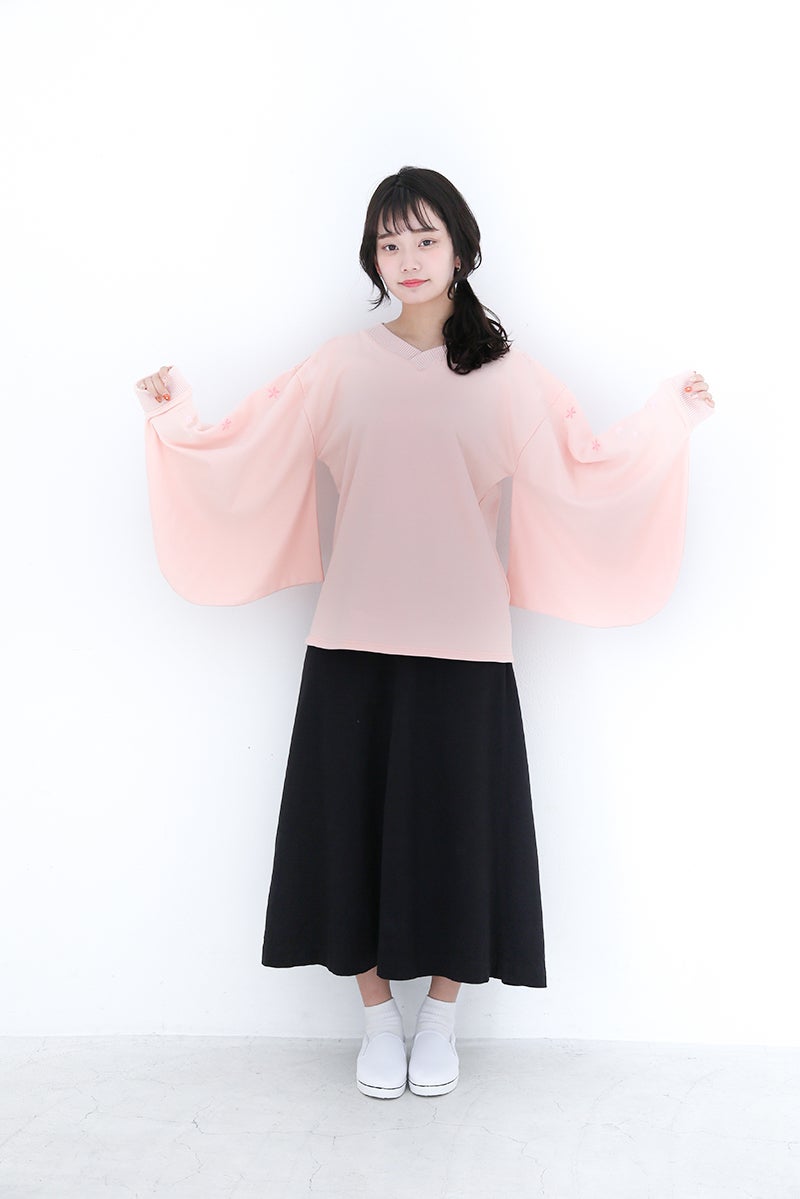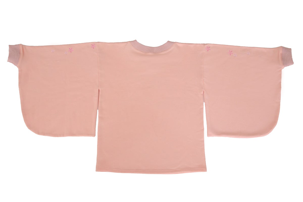 和風をさりげなく楽しめるよう、スウェット生地ながら振袖の仕様を取り入れています。