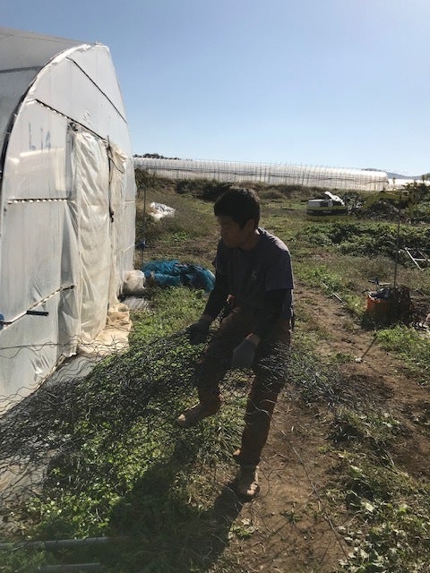 壊れたハウスを解体することから始まり。