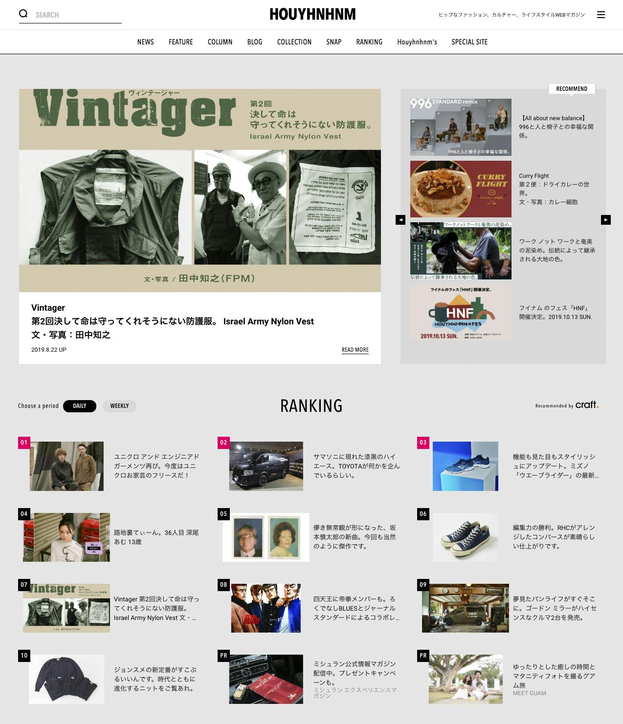 わたしたちは、2004年10月に創刊したウェブマガジン「フイナム」です。フィナムやホイナムなど間違われることもありますが、正しくは「フイナム」。英語で書くと「HOUYHNHNM」です。読みにくくてすみません!
