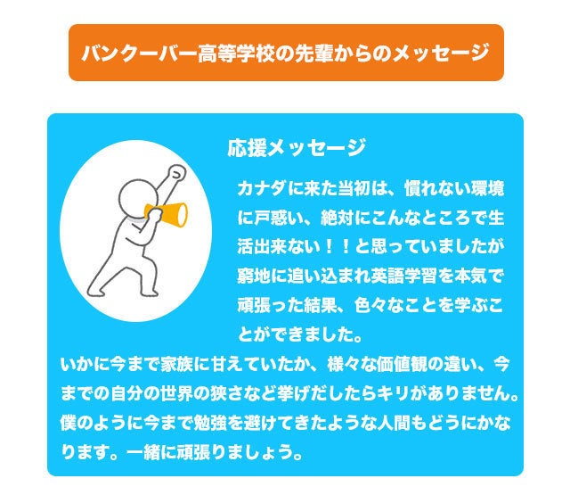 当会は①にもある通りバンクーバー高等学校という日本の通信制高校のコーディネーターがカナダにおり、スムーズな派遣が可能となります。