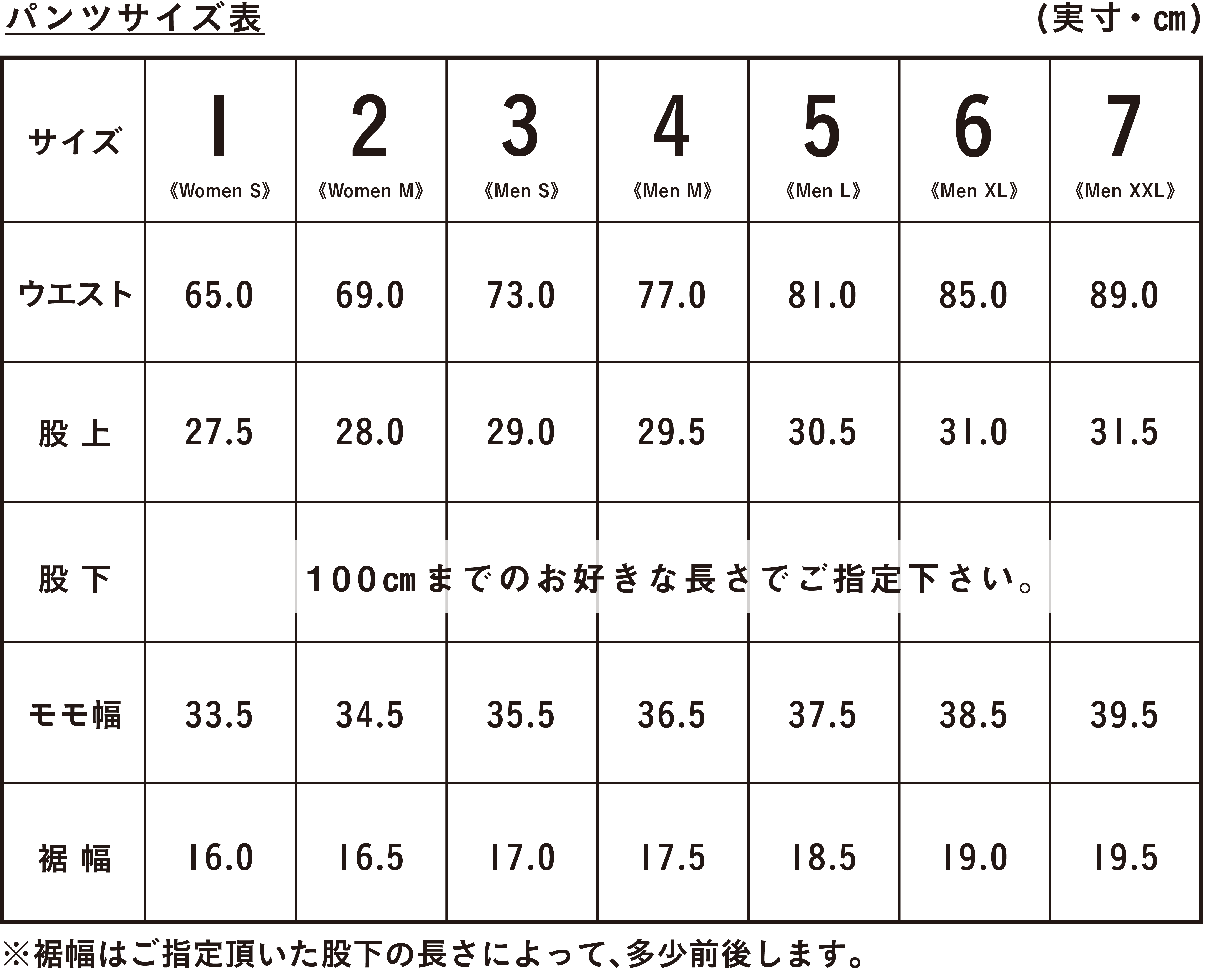 ※ご指定がない場合は、股下82cmでのお届けになります。
