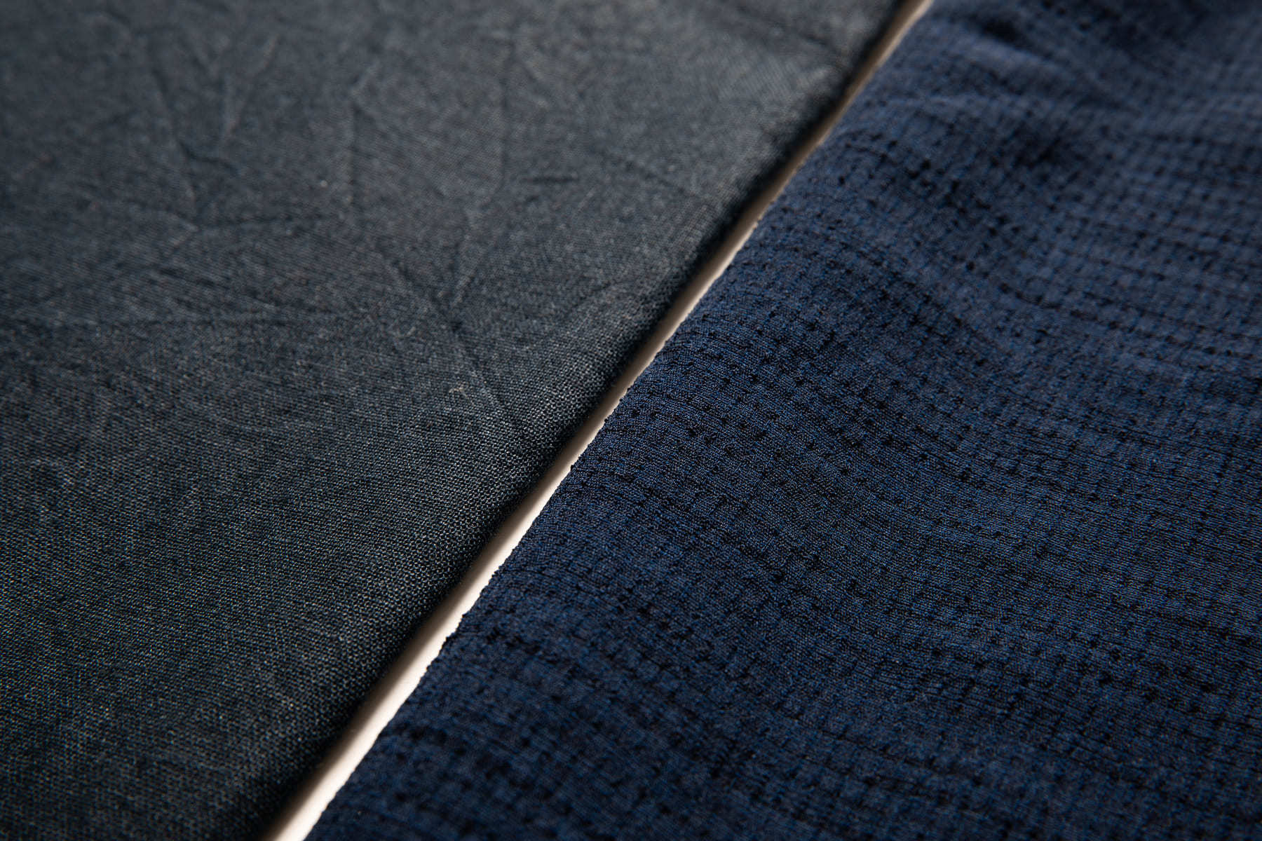(左:従来の麻100%素材 右:新素材) ネイビー