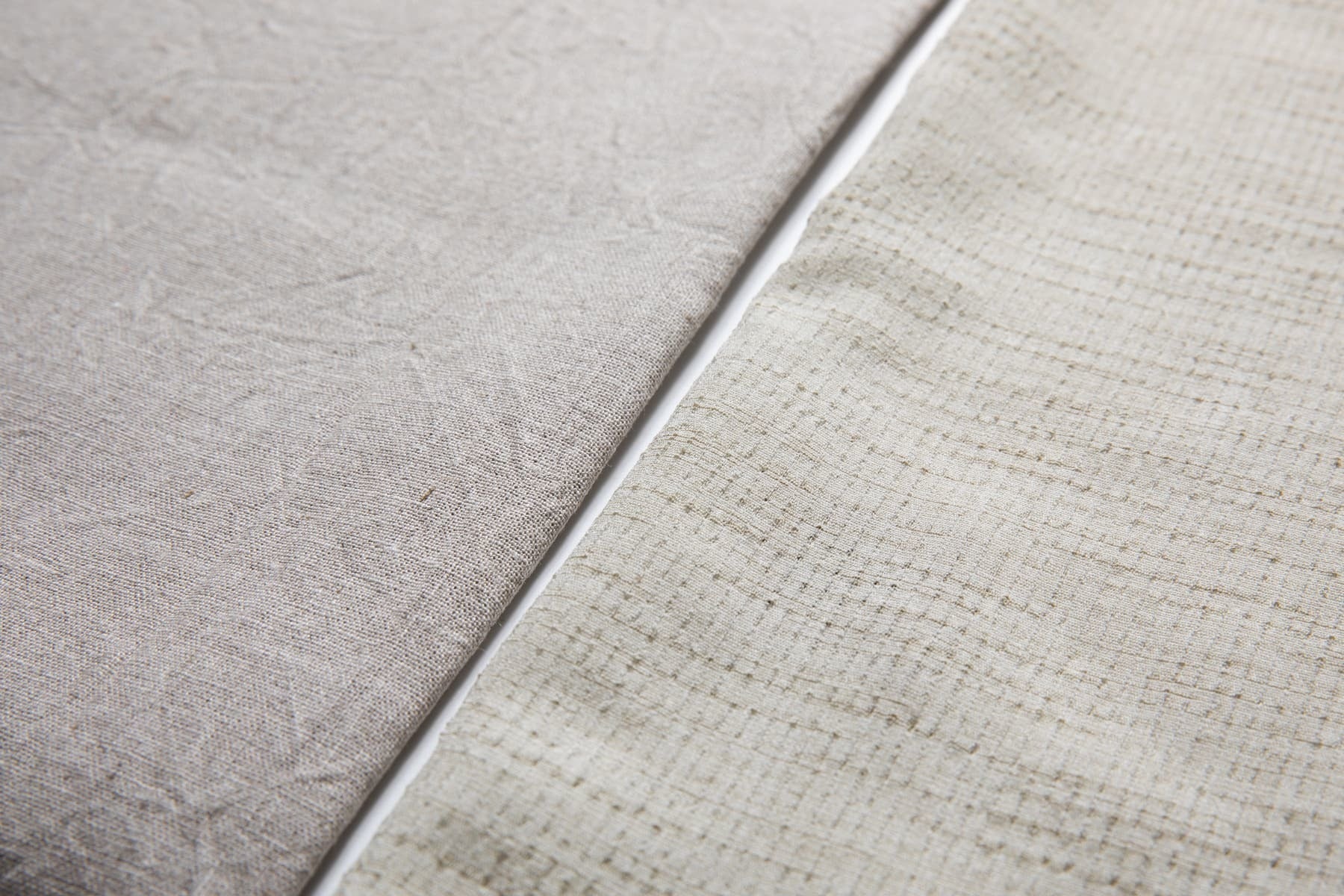 (左:従来の麻100%素材 右:新素材) キナリ