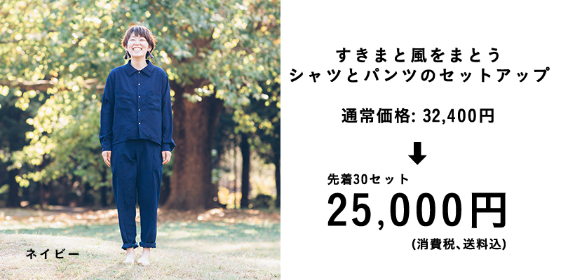 今回の商品は、暖かい季節に着てほしい『すきまと風をまとう服』です。リターンのお届けは、元号が変わる直前の2019年4月の予定です。(少し製造に時間がかかってしまいます。。すみません!)