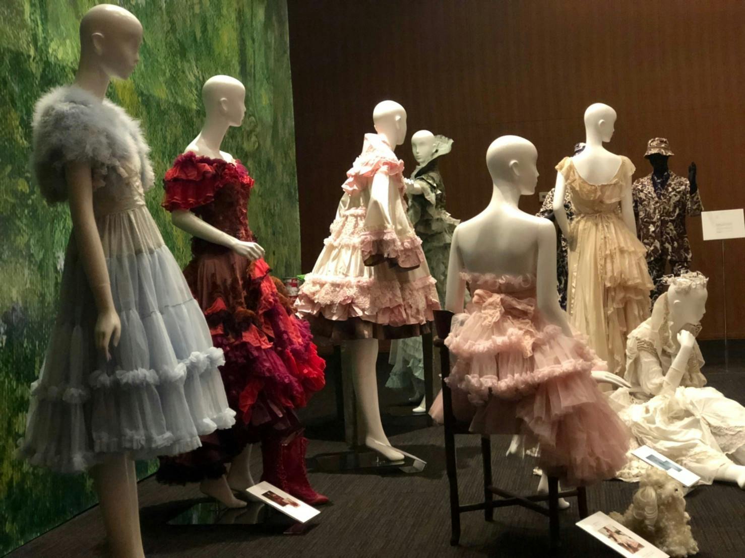・大塚がアーティストのためにデザインしたビンテージのリメイクドレス、スタイリングの再現の展示。