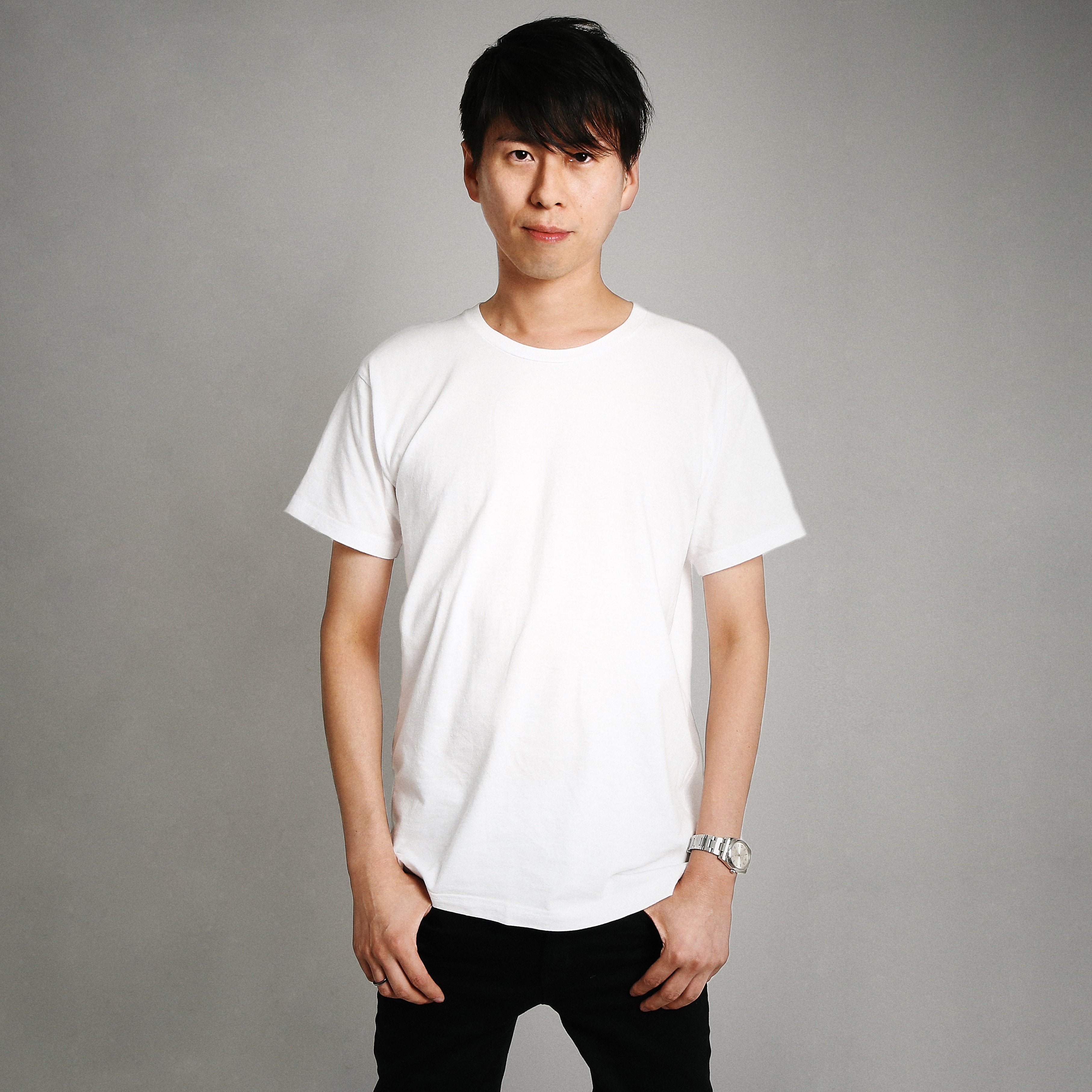 僕が着るとこんなサイズ感になります。身長176㎝、体重58kgです。