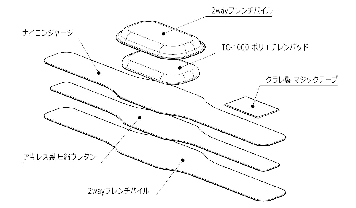 5. 各素材はケア用サポーター等で既に使用実績のある安全性の高いものだけを厳選し、製造は全て日本国内で行っております。