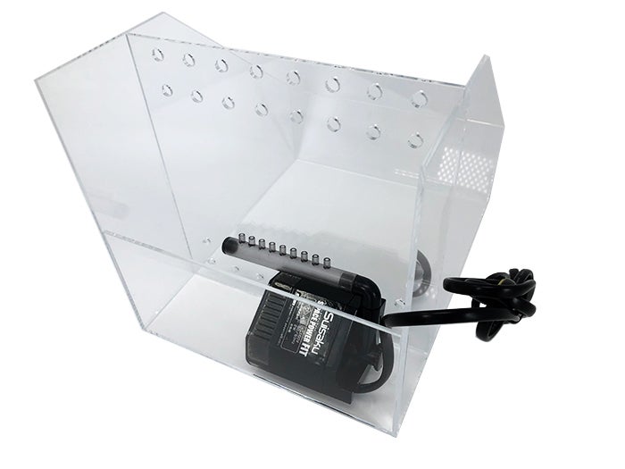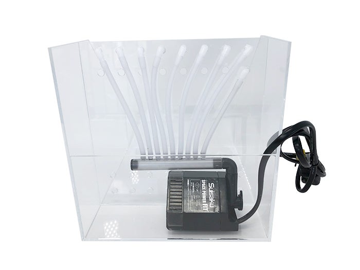 砂と水を入れて、水中ポンプをコンセントにさせば完成です。