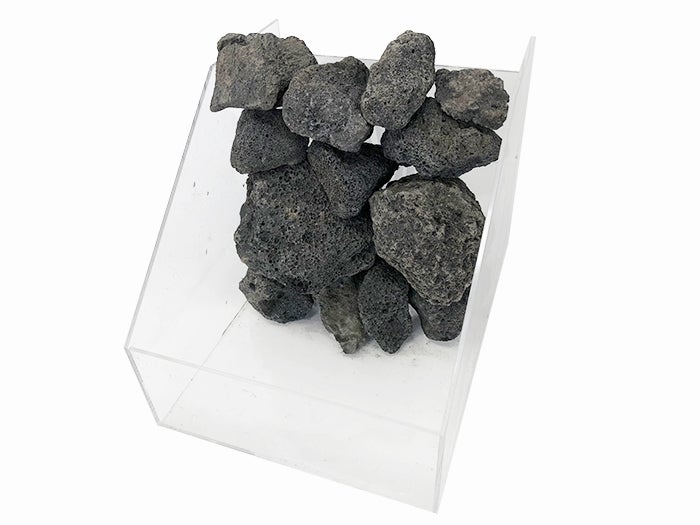 盆水のセットに含まれている溶岩石は、特に軽い岩が取れる産地のものを厳選して使用しております。軽いということはそれだけ岩の内部にも隙間があるということです。これによって水がしみこみやすいので浄化作用も大きいということです。