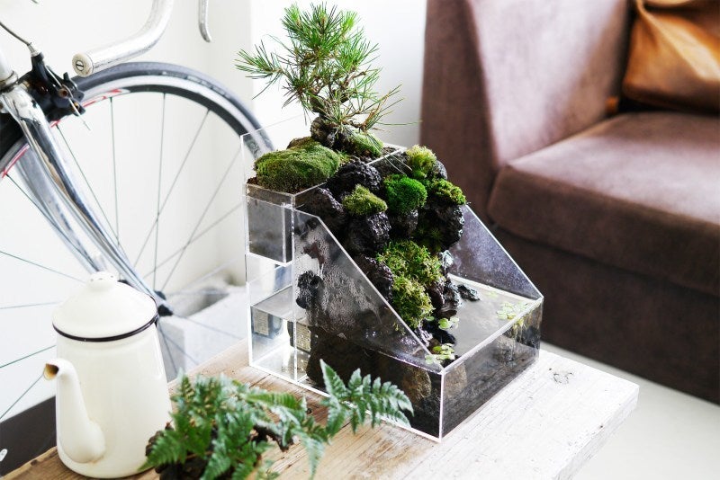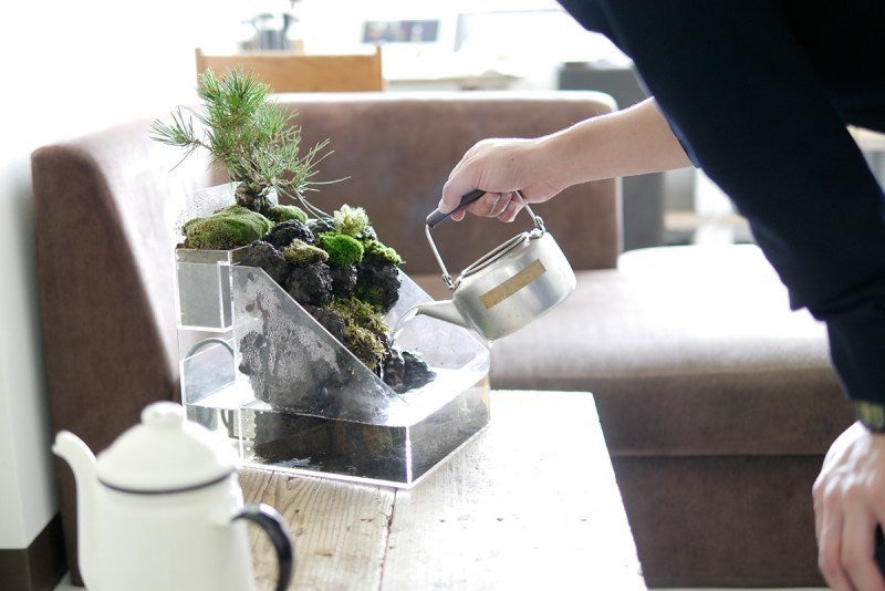 ▼水の流れる盆栽キット「盆水」は簡単に日本の自然を再現する事ができます。
