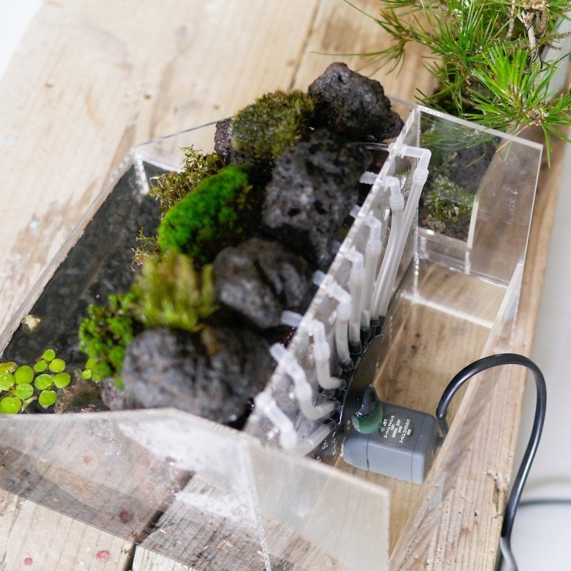 盆栽、苔、溶岩石、水中ポンプなど、必要なものはセットにしてお届けしますので、商品が到着するとすぐに組み立てていただくことが出来ます。