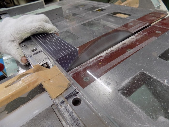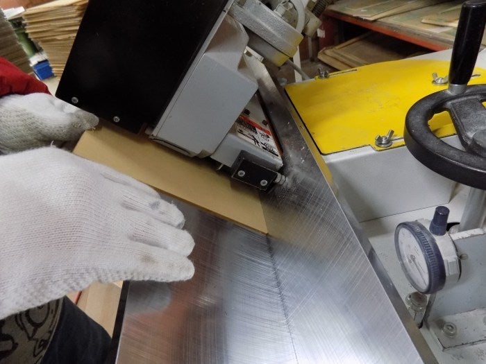 盆水ケースの板を切り出しているところです。