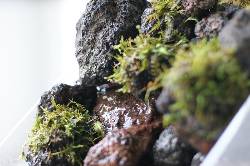 質の良い溶岩石を集め、山に入って水際の苔を採取し、見栄えの良い盆栽を入手するのは大変な事です。