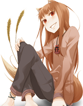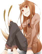 御歳数百歳にして、麦に宿りその豊作を司る狼の化身。人に化けているときは可憐な少女の姿だが、獣の耳と尻尾は隠すことができない。故郷から遠く離れた辺鄙な村の麦畑で、人々から忘れ去られていたところ、ロレンスと出会って一緒に旅に出ることになる。リンゴと、桃のはちみつ漬けと、ロレンスが好き。