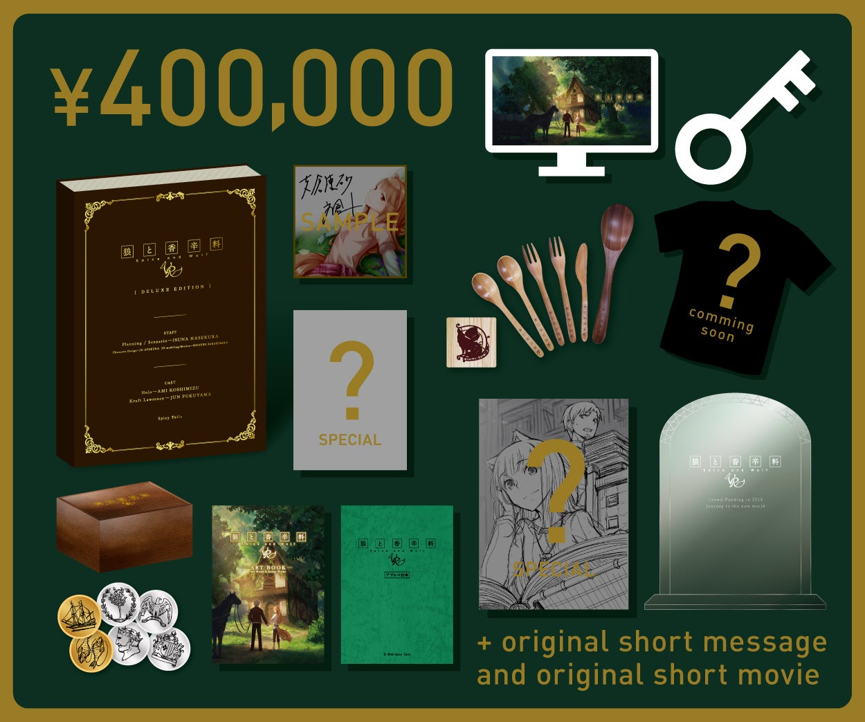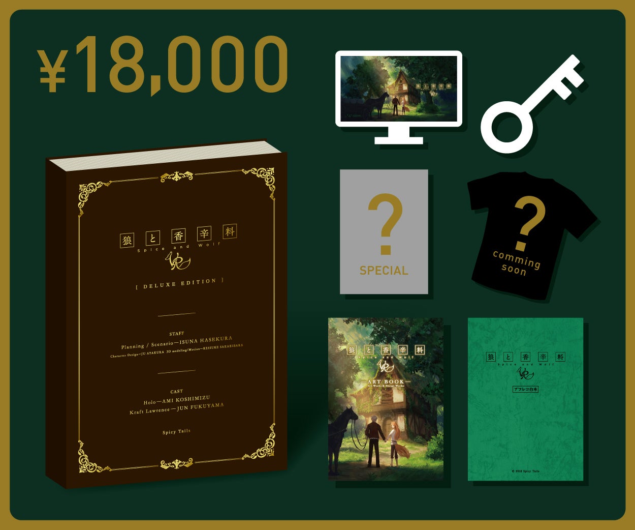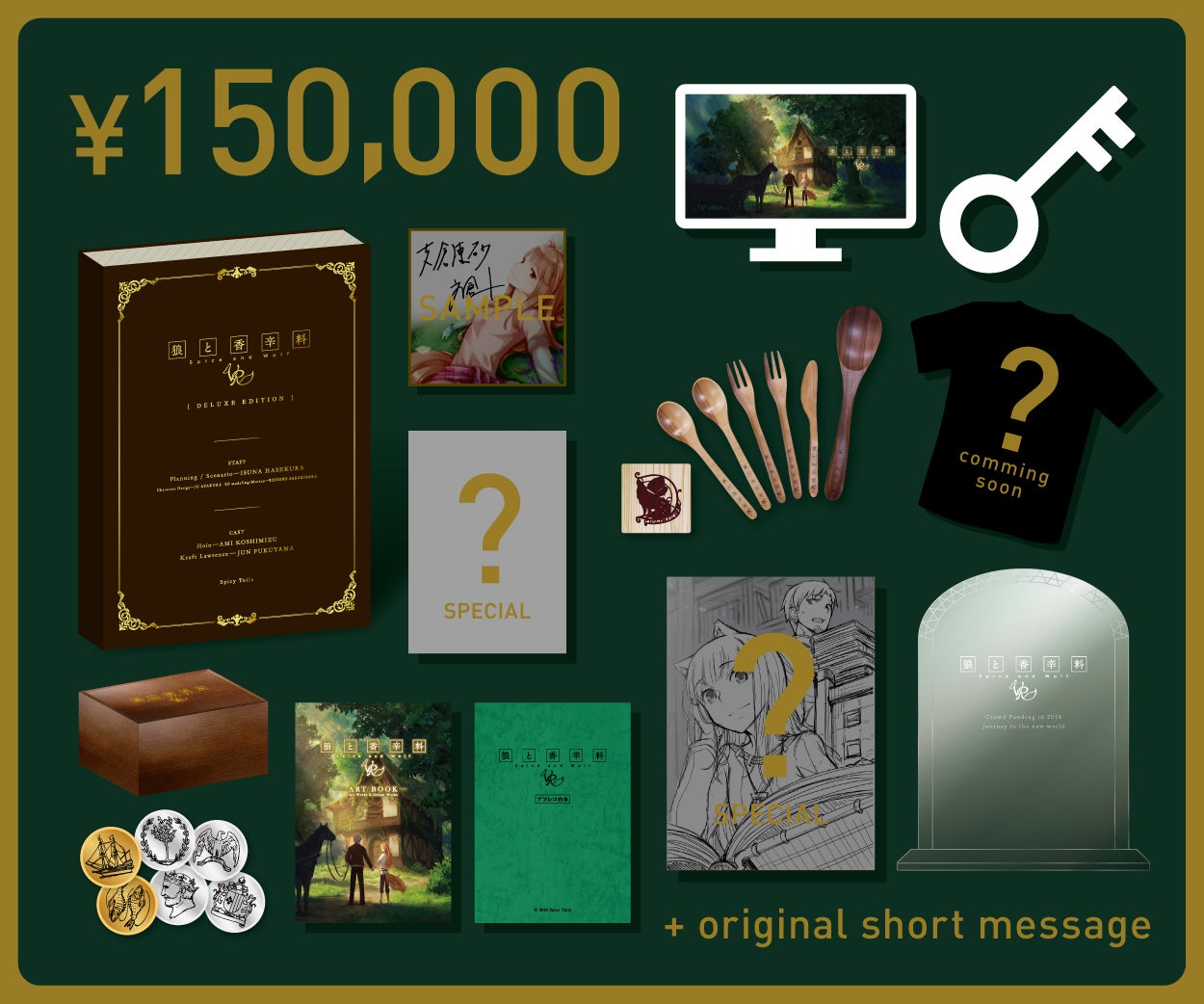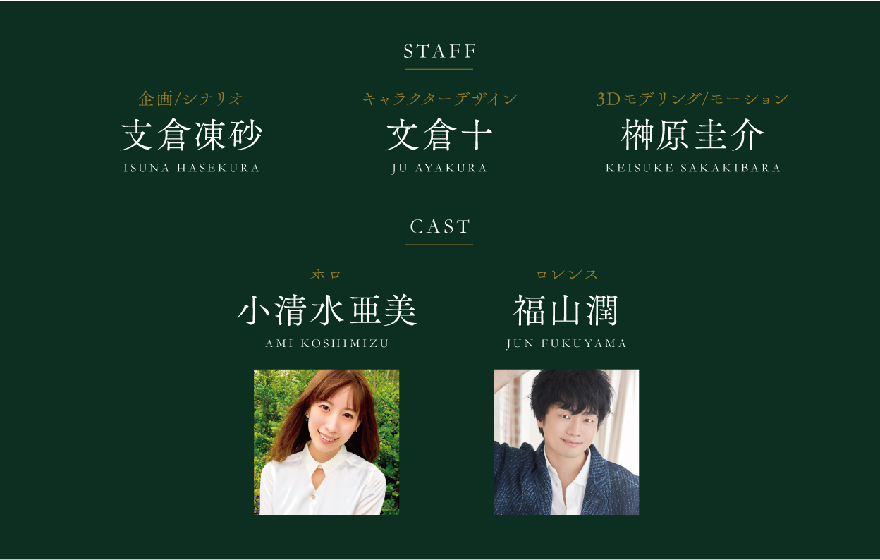 今回の企画にあたっては、原作者である支倉凍砂がシナリオを書くのはもちろん、新規衣装書下ろしには文倉十さん、ロレンス役には福山潤さん、ホロ役には小清水亜美さんをお迎えし、原作力120%で製作にあたっております!