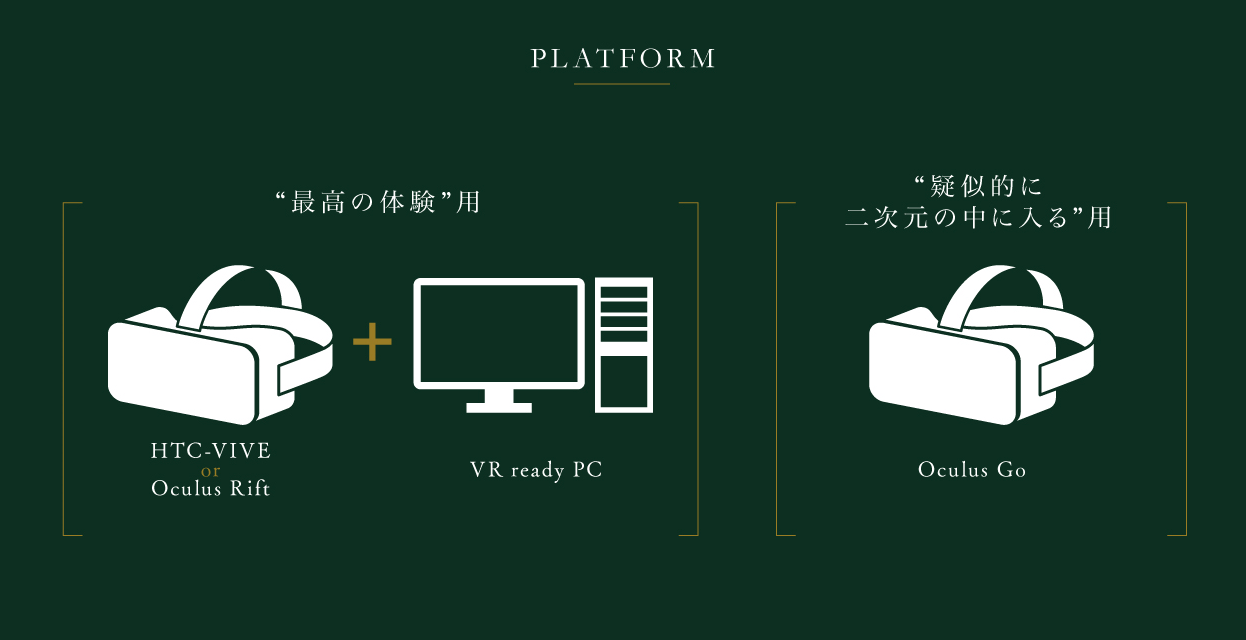 ***OculusQuest版、PSVR版はストレッチゴールのため、リターンのパッケージ版(通常版・豪華版)には含まれません。パッケージにはPC・OculusRift・HTC-VIVEで動作するソフトが同梱されます。