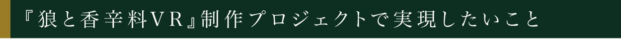 『狼と香辛料』は節目を迎え、昔から応援してくれていたファンの皆様、もちろん最近知ってファンになって頂いた皆様と一緒に、今まで作りたかったVRアニメーションを盛り上げていきたいと思い、今回のクラウドファンディング実施に至りました。