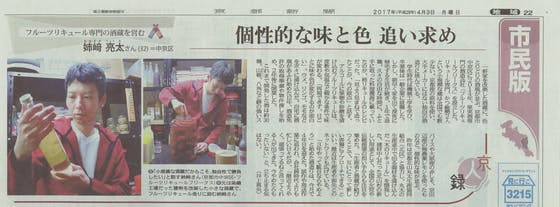 2017/04/04 07:44弊社記事が京都新聞に掲載されました。木のリキュールについてちょっと紹介されています。 http://fruitliqueurfreaks.com/2017/04/04/kyotosinbun1/ こんなコメントした覚えないんだけどなー。「」の中身は記者の主観、「20分くらいのインタビューの簡単なまとめ」です。本人には「微妙に違う感じに伝わってるな」というモヤモヤが残る。 とはいえ記事にしてもらえるのはありがたいことであり、そんなこと言うのはわがままなんですが。 もっと見る木のリキュール発送開始