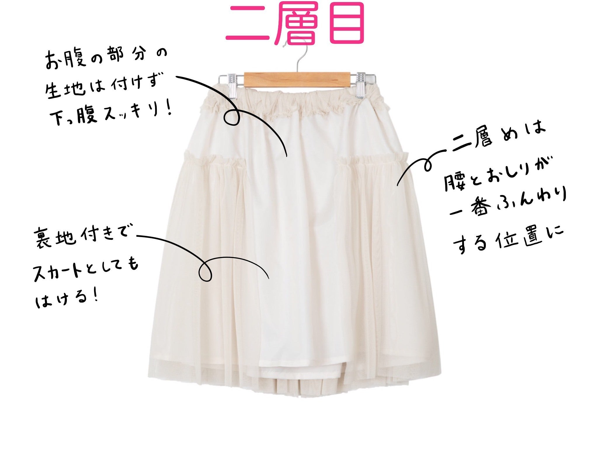 ◆自然なボリュームなのがいいですね。パニエとしてももちろんですが、裾が何層にもなっていて透け感が可愛いので、スカートとしてもどんどん履きたいです。