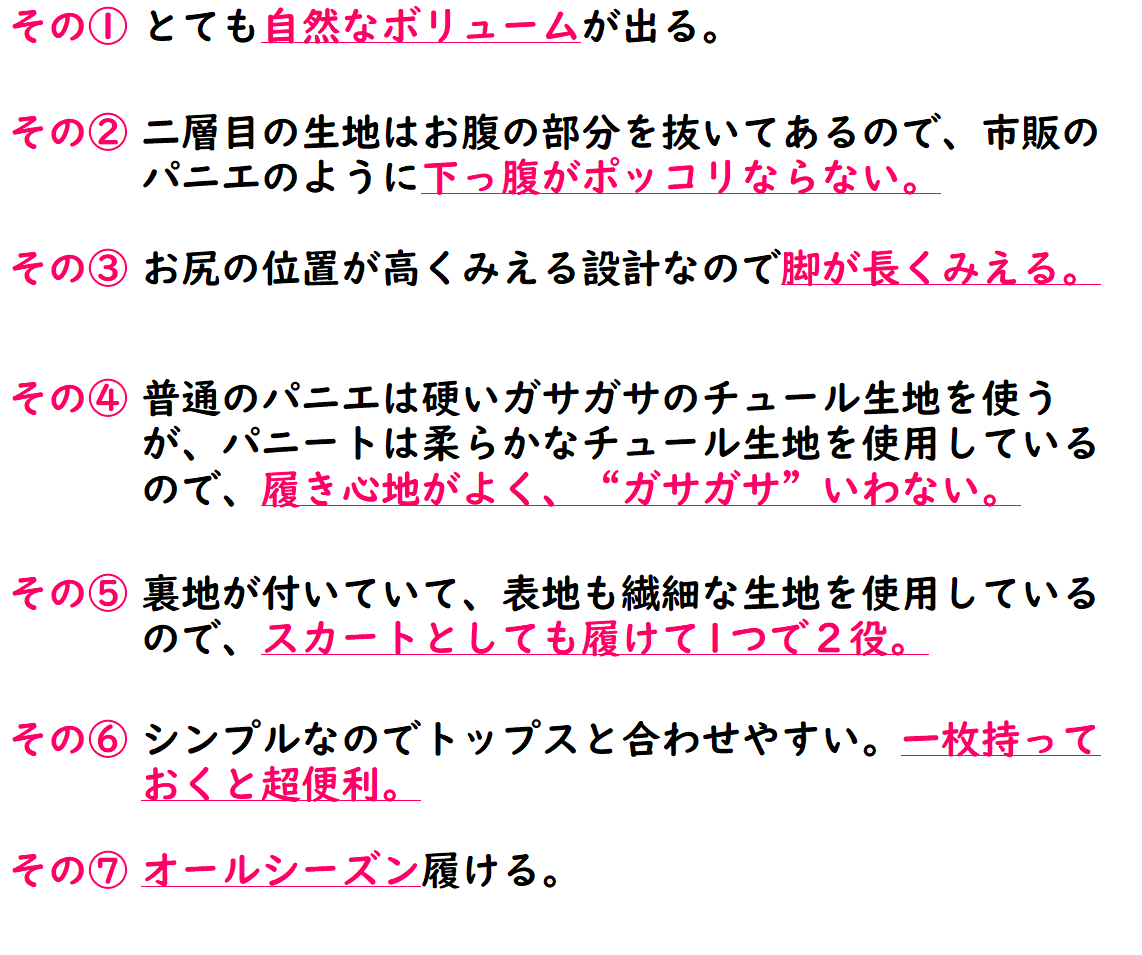 『パニート』は、スカートを膨らませるためのパニエとスカートを掛け合わせた、新しいファッションアイテムです。