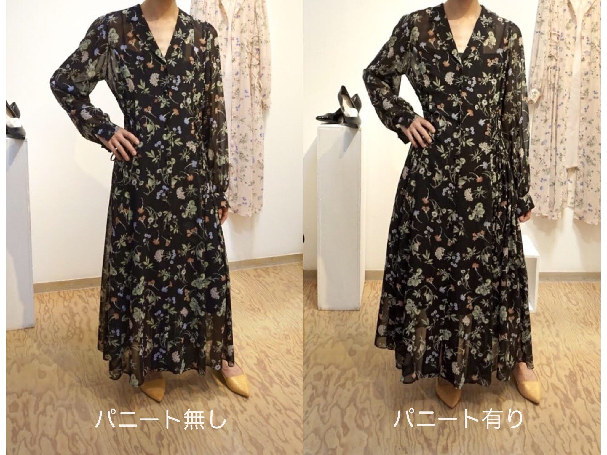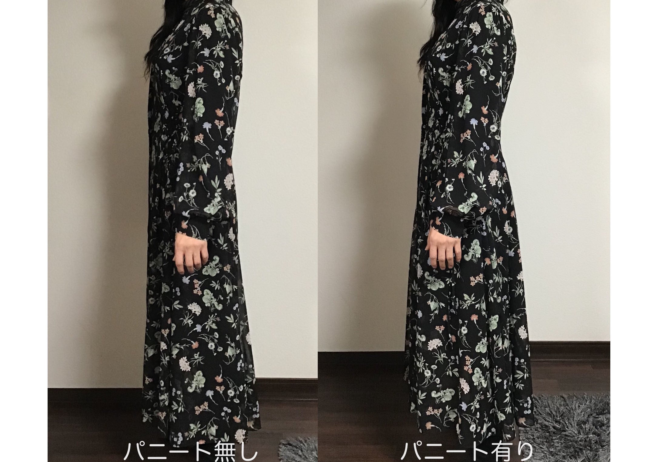 いかがですか? 右側のパニート有りの方がふんわりしたシルエットになりますよね。