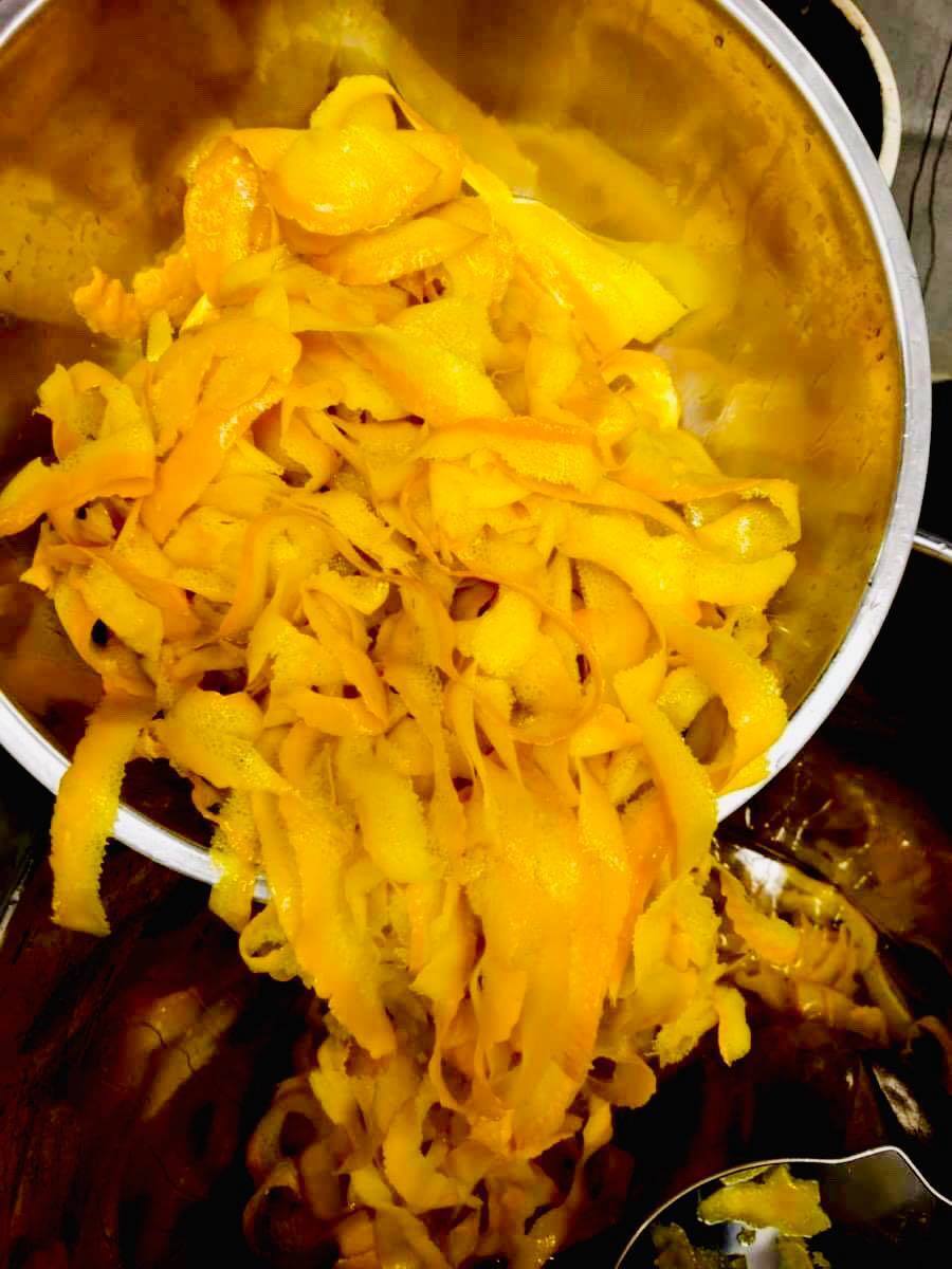 ▼日本産の柑橘を手作業で丁寧に剥いて造る