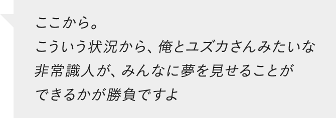 主催者でも、監督でもなく、「夢を追う、末端の役者たち」です。